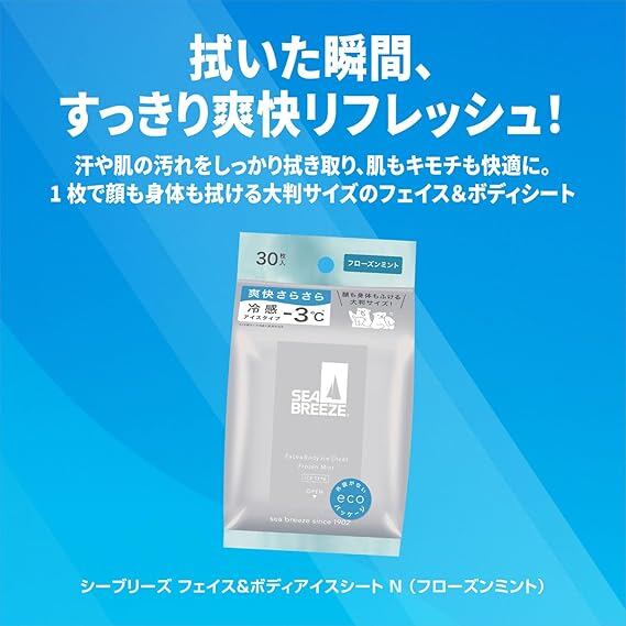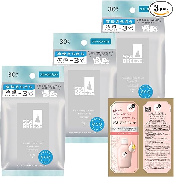 【まとめ買い】シーブリーズ SEA BREEZE フェイス&ボディシートN フローズンミント 30枚×3個+おまけ 大判 全身 顔 汗 汚れ 快適 皮脂 テカリ メントール すっきり 爽快 清潔 暑さ対策 a