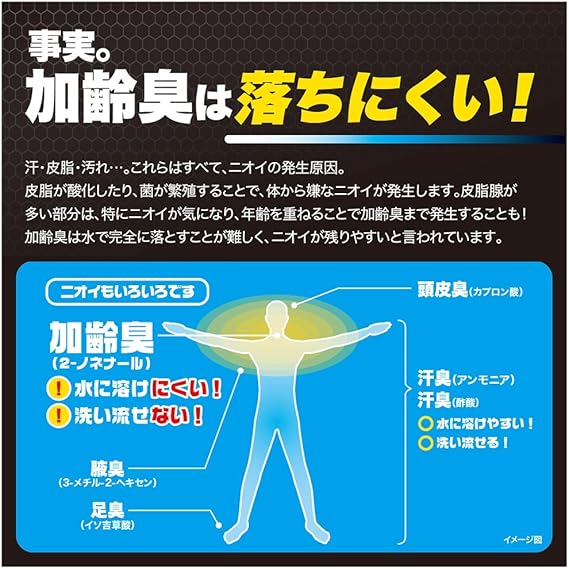 気になる全身のニオイ、加齢臭まで、シュッとひと噴きで徹底爽快リフレッシュ(シトラスハーブの香りによるニオイベール効果)!