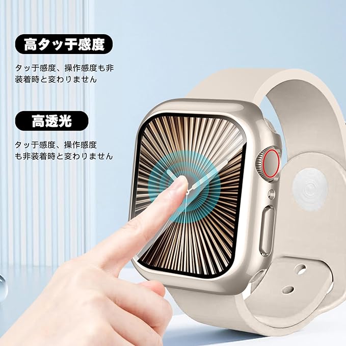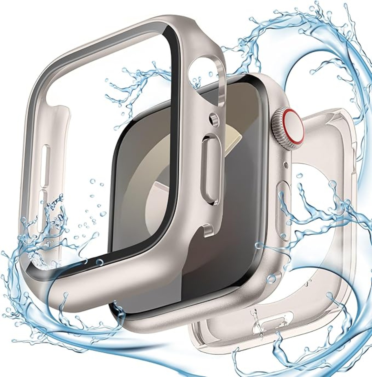 【360度防水設計】 CAERMA for アップルウォッチ カバー Series 10/9/8/7/SE2/SE/6/5/4 40mm 超薄型 for Apple Watch カバー 2in1防水 PC素材 硬度9H強化ガラス 高透過率 指紋防止 耐衝撃 全面保護 for Apple Watch ケース スターライト a