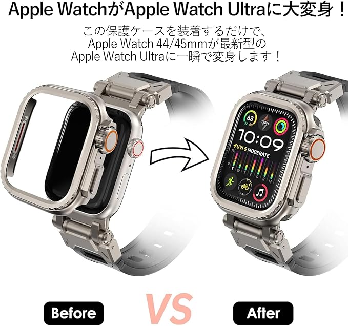 for Apple Watchケース アップルウォッチカバー 亜鉛合金素材 45mm/44mm 瞬時にApple Watch Ultraに変身する series 9/8/7/SE/6/5/4 アップルウォッチ保護ケース+背面ケースの2 in 1デザイン 防傷 耐衝撃 Apple Watchアクセサリー (45mm、チタンカラー) a