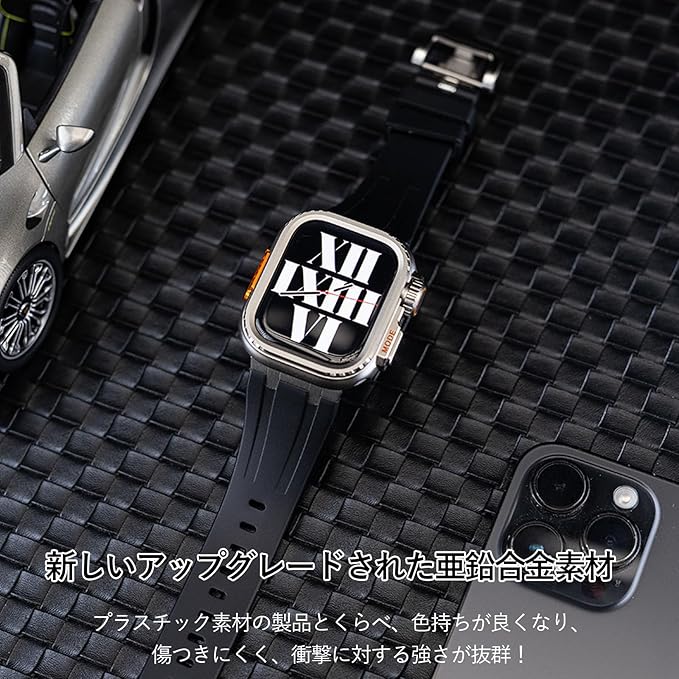 「新しいアップグレードされた亜鉛合金素材」Apple Watchケースの材質には、航空機や精密機器の部品にも多く使用される亜鉛合金を使用。耐衝撃性に優れており、プラスチック素材の製品とくらべ、衝撃に対する強さが抜群!更に振動を吸収する性能があるので、大切なApple Watchを衝撃から守ります。傷つきにくく、耐摩耗性が向上しています。色持ちが良くなり、より高級感が増しました。また、着け外しの手間が少ないのも魅力。ファッションやお出かけのシーンにあわせて複数のケースを使い分け、雰囲気を変えてお楽