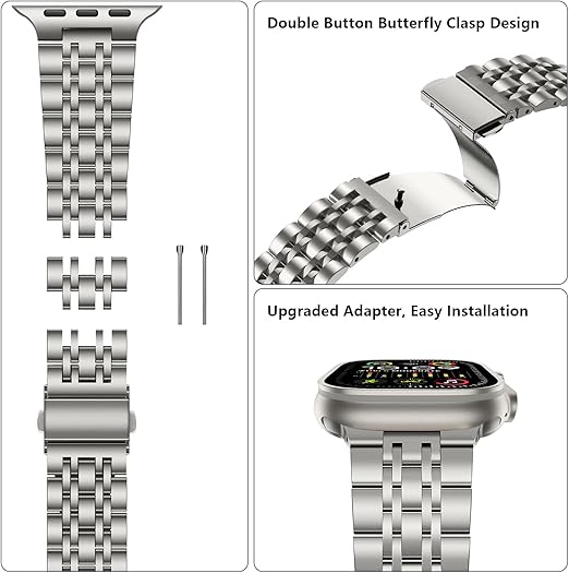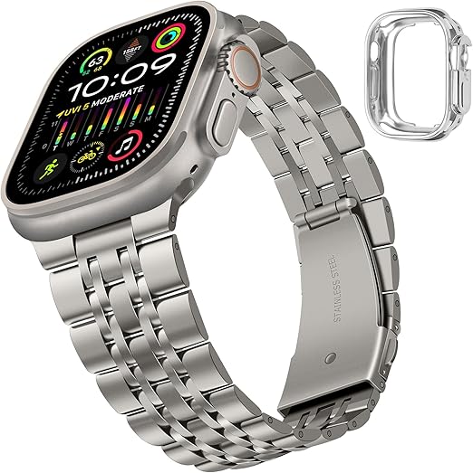 スポーツ バンド と互換性のある Apple Watch Ultra, プレミアムステンレススチールメタル交換バンドコンパチブル iWatch Watch Ultra2 Ultraに対応 男女兼用 (チタン) a