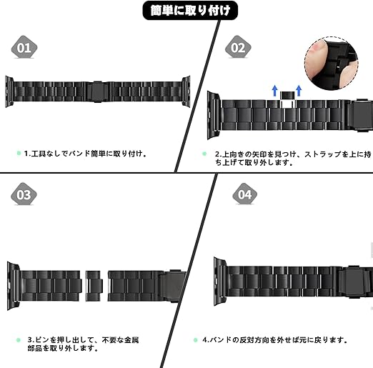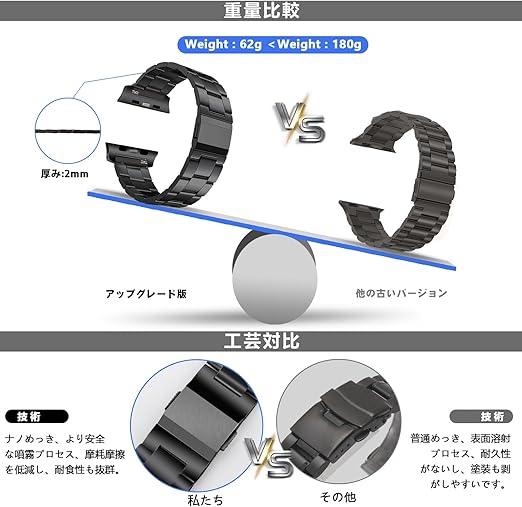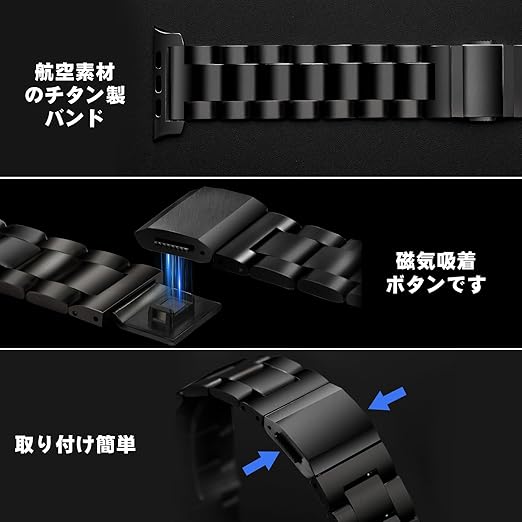 【優れた素材】高品質の航空素材のチタン製頑丈な構造により、Apple Watchをしっかりと保持し、安定した装着を実現します。精巧な磨きが施され、耐久性とエレガン