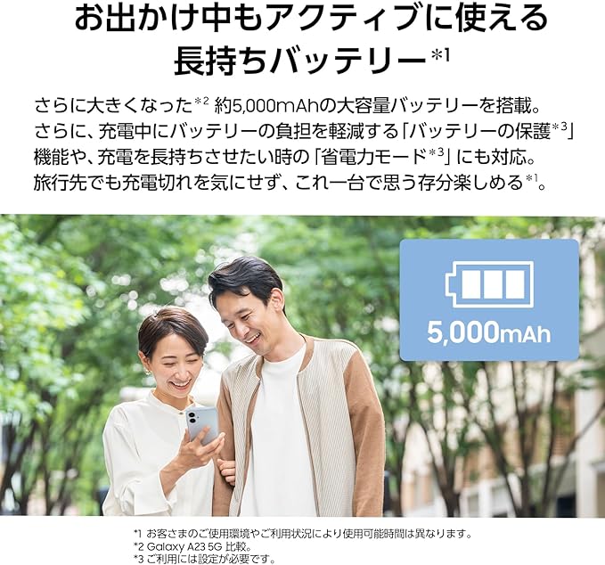 約6.7インチの大画面で、お好きな動画やSNSを快適視聴。文字も打ちやすいからメールも打ち間違えることなく返信できる。また、ブルーライトを調整する「目の保護モード*1」機能により、スマホ利用時の目の疲れや負担を軽減。大画面で見やすく、目にも優しく、毎日がもっと楽しく快適に。*1 ご利用には設定が必要です。