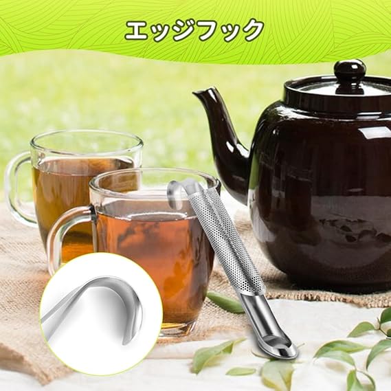 【高品質ステンレス製ティーストレーナー】 高品質の食品級ステンレス鋼で作られたこのティーディフューザーは、お茶が本来の豊かな風味を保つことを保証します。微細なメッシュフィルターにより、ルースリーフティーの葉がこぼれ出るのを防ぎ、のないスムーズなお茶の体験を提供します。家庭、オフィス、旅行どこでも使用でき、お茶愛好者に欠かせないアイテムです。