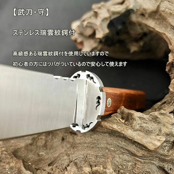 【ステンレス瑞雲紋鍔付】高級感ある瑞雲紋鍔付を使用していますので初心者の方にはツバがついているので