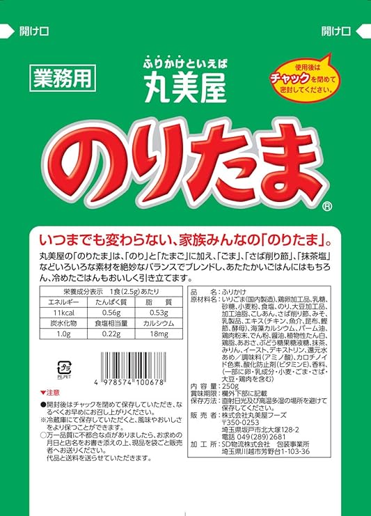 原材料:いりごま(国内製造)、鶏卵加工品、乳糖、砂糖、小麦粉、食塩、のり、大豆加工品、加工油脂、こしあん、さば削り節、みそ、乳製品、エキス(チキン、魚介、昆布、鰹節、酵母)、海藻カルシウム、パーム油、鶏肉粉末、でん粉、醤油、植物性たん白、鶏脂、あおさ、ぶどう糖果糖液糖、抹茶、みりん、イースト、デキストリン、還元水あめ/調味料(アミノ酸)、カロチノイド色素、酸化防止剤(ビタミンE)、香料、(一部に卵・乳成分・小麦・ごま・さば・大豆・鶏肉を含む)