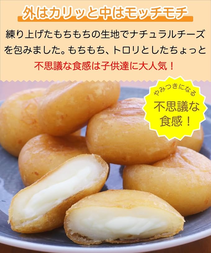 練り上げたもちもちのジャガイモ生地をナチュラルチーズで包みました。もちもちでトロリとしたちょっと不思議な食感は子どもたちにも人気です! また、パーティーにもこの1品があるとおつまみに最適です。