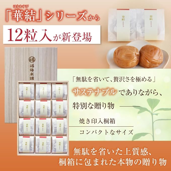 【福梅本舗】 華結(はなむすび)12粒入「あまみつ梅(塩分5%)」梅干し 紀州梅干し ギフト お歳暮 はちみつ梅 贈答 個包装 減塩 国産 お取り寄せ グルメ大賞受賞! 2種類の味を選べる梅干しギフト a