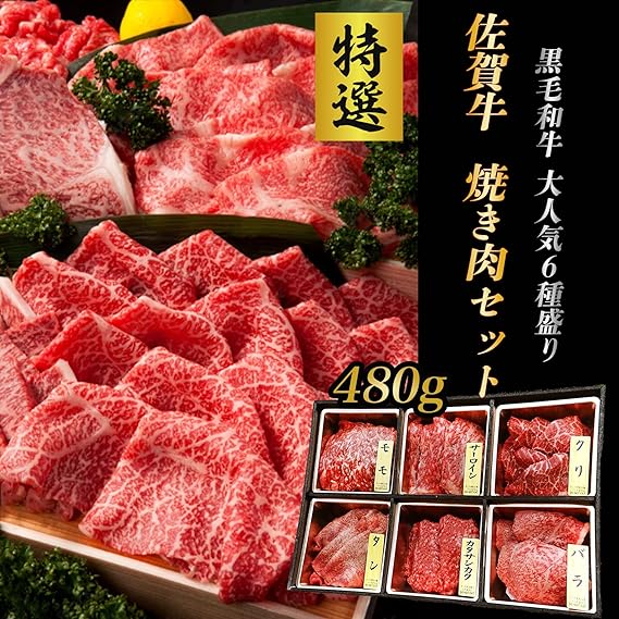 佐賀牛 焼肉セット6種の部位 480g(2~3人前) 食べ比べ 牛肉 焼肉 焼き肉 バーベキュー BBQ 肉 ギフト お中元 お歳暮 a