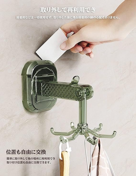 キッチンツールフック 吸盤 フック キッチンラック 台所ラック 360°回転可能 強力接着 キッチン収納 軽量 キッチンツール 収納 バスルーム収納 防水防錆 壁掛け 取り付け簡単 傷つけない 6個フック付き a a