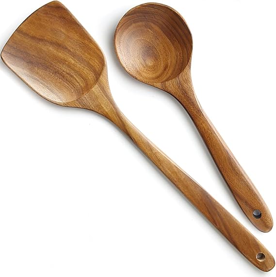 AOOSY しゃもじ 木製 木べら ターナー 2点セット フライ返し 料理用 ヘラ キッチンツールセット 炒め物 木製キッチン キッチングッズ 調理道具 調理器具 台所用品 (2) a a