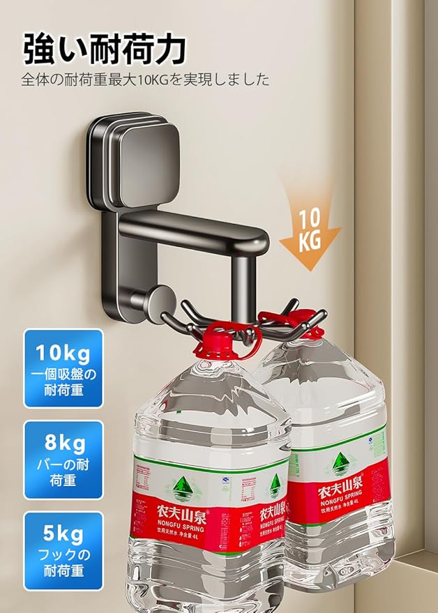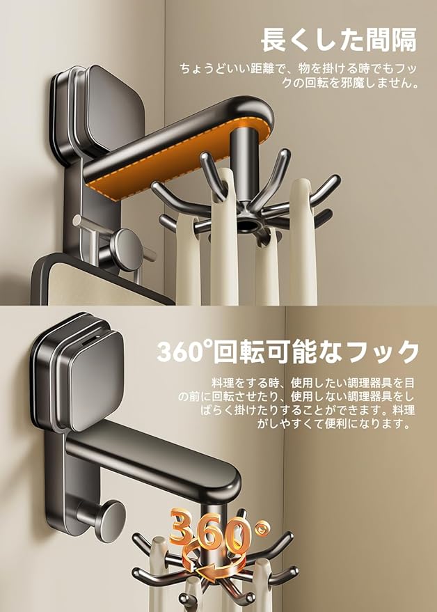 【革新の強力吸盤】弊社のキッチンツールフックは、全面的にアップグレードされた第4代の真空吸盤を使用しています。高品質の材料を採用、外殻はABSで、吸盤と壁の接続部分は最新のTPE材料で作られ