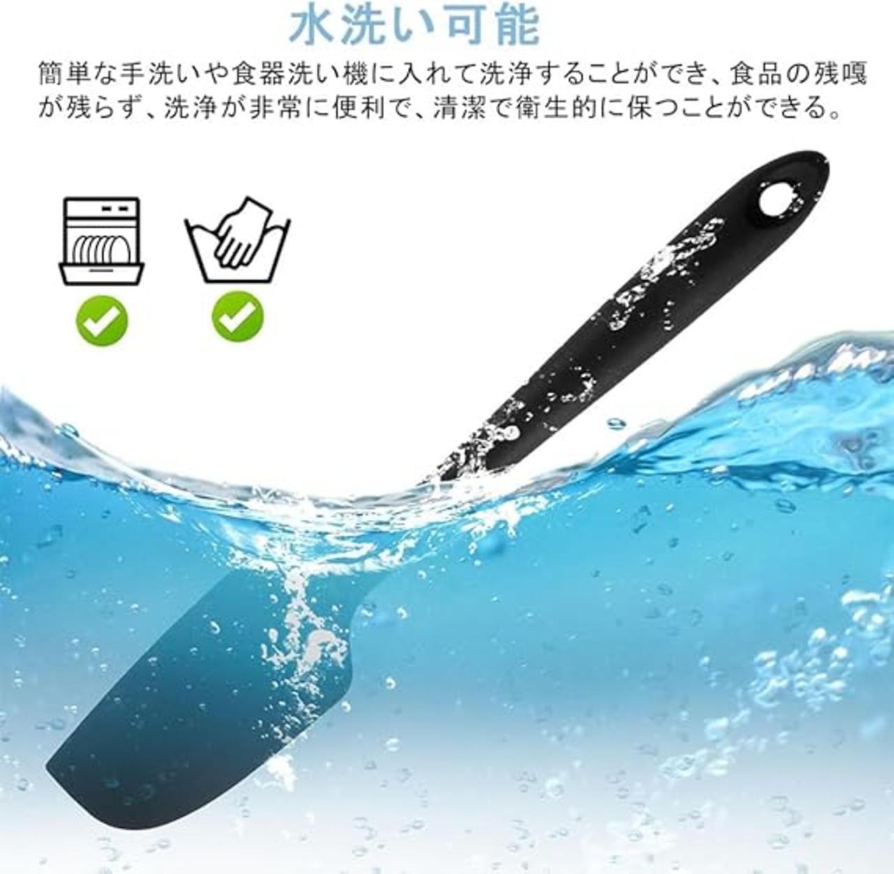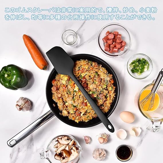 セット内容:ゴムヘラ1個セット、サイズ:約28cm×5.2cm。人体工学に基づいた滑り止めハンドルで、握り心地が快適で使用時の安定性を高めます。また、取り付け用の穴が付いており、吊り下げて収納できるので、キッチンのスペースを節約できます。