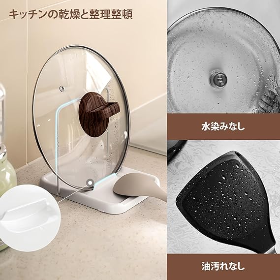 【調理効率UP】PAVSTINE 2-in-1多機能お玉 鍋蓋スタンドは、調理中のお玉・菜箸・鍋蓋を同時に収納可能、調理中も簡単に取り出せます。カウンタートップやシンクにスープや蒸気が飛び散るのを避けることができ、カウンタートップやコンロがすっきりと整頓されます。あらゆるサイズの蓋やカトラリーに対応するため、汎用性が高く、調理効率を効果的に向上させます。