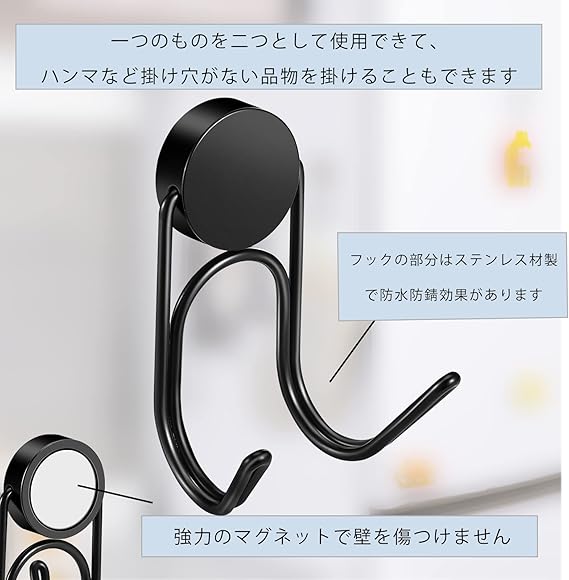 マグネット フック 磁石付き 304ステンレス製 防錆 垂直耐荷重28kg 水平耐荷重5kg 防腐食 キッチン用 オフィス用 浴室 冷蔵庫 玄関 壁掛け用 8個(32mm-2-28KG, ブラック) a a