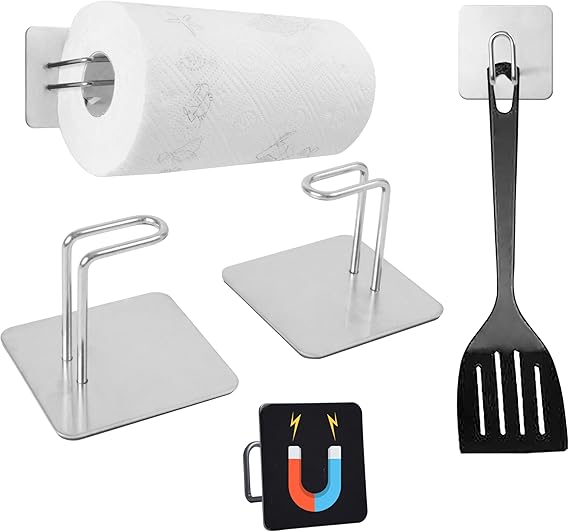 キッチンペーパーホルダー マグネット 2個入 ペーパータオルホルダー マグネットフック キッチンツールフック キッチン収納 挟み込み式 片手で切れる SUS304ステンレス製 EX-SPACE (シルバー) a a
