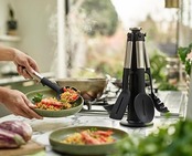 シリコン製のユーテンシルヘッドは、270℃まで耐熱性があり、ノンスティック調理器具に適しています