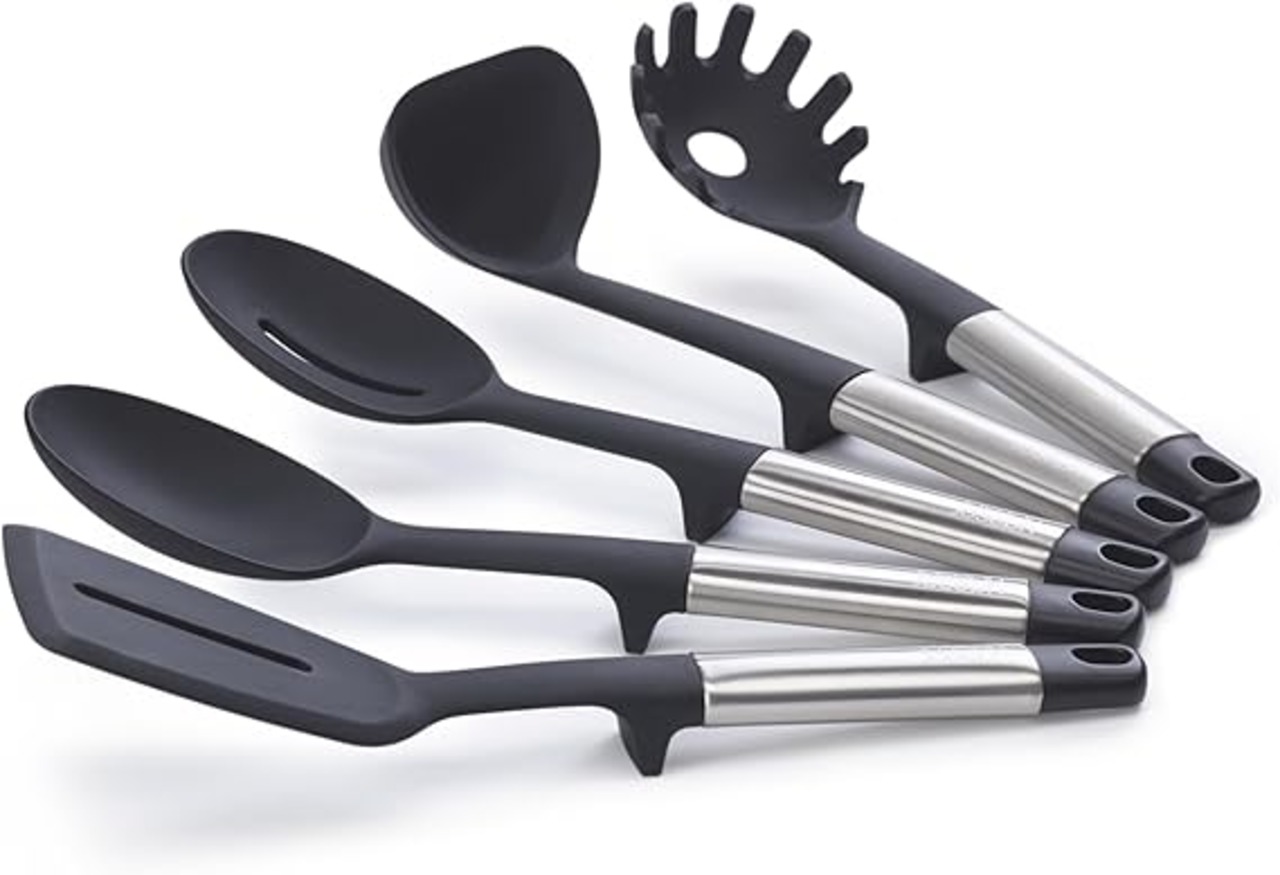 Joseph Joseph Elevate 5点シリコンキッチンツールカラセルセット, BPAフリー, 耐熱性ノンスティックツールセット, ウェイト付きステンレススチールハンドル 【正規品】 10567 a a