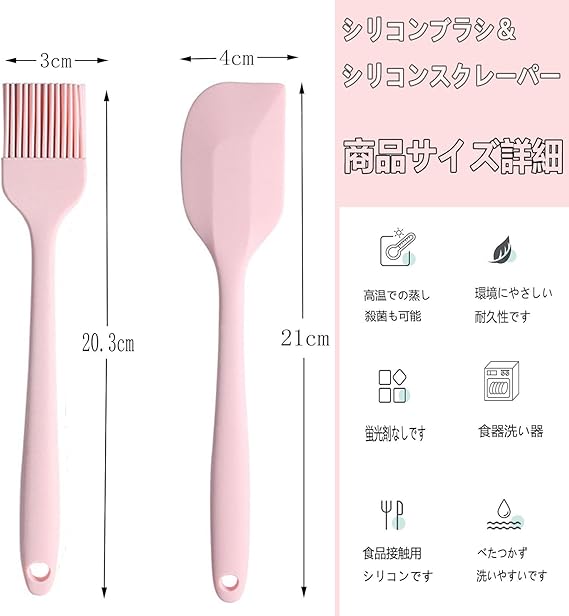 油ブラシ スパチュラ キッチンツールセット スパチュラ シリコン 調理スパチュラ 料理ブラシ 耐熱 製菓道具 魚 焼肉 お菓子 キッチン用品 (ピンク) a a