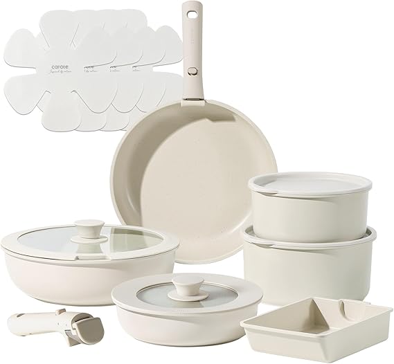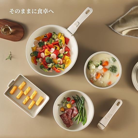 CAROTE カローテ フライパン セット 16点 IH対応 PFOA PFOS フリー 取っ手のとれる マーブルコート こびりつきにくい 手入れ簡単 一年保証 グレージュ COSY高級シリーズ a a