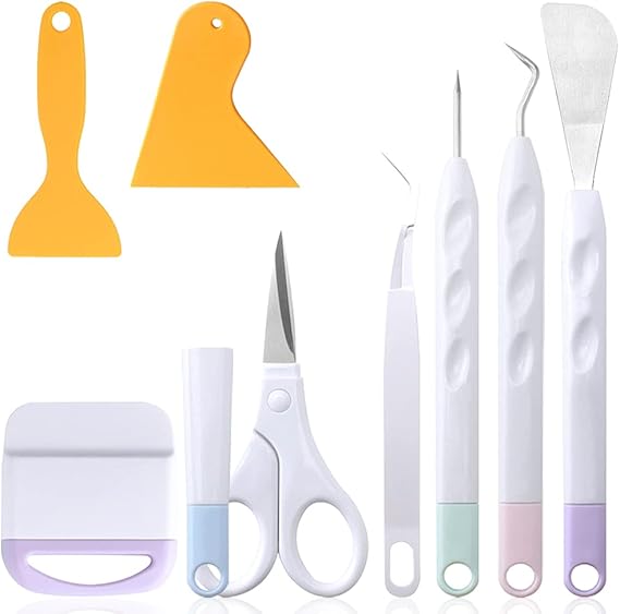 ビニール用除草ツール、FineGood 8個 除草ツールセット ベーシッククラフト除去キット はさみ スクレーパー へら ピンセット ダイカットカードストックスクラップブック用 a a