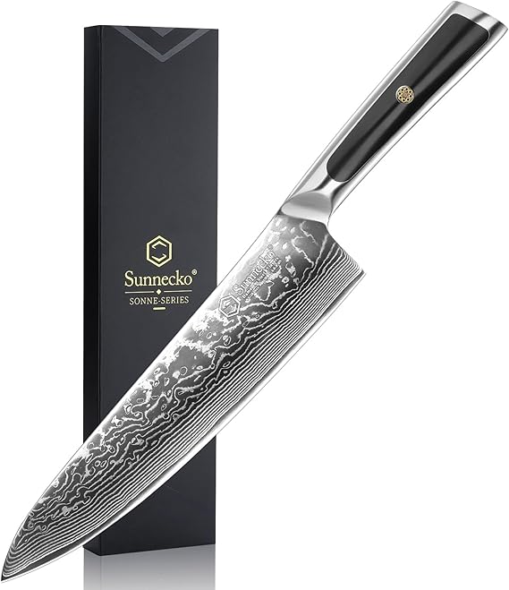 Sunnecko 包丁 牛刀 203MM ダマスカス 67層 ステンレス 鋼 家庭用 キッチン 両刃 万能 よく切れる 野菜 肉 魚 プレゼント 結婚祝い パン切り a a
