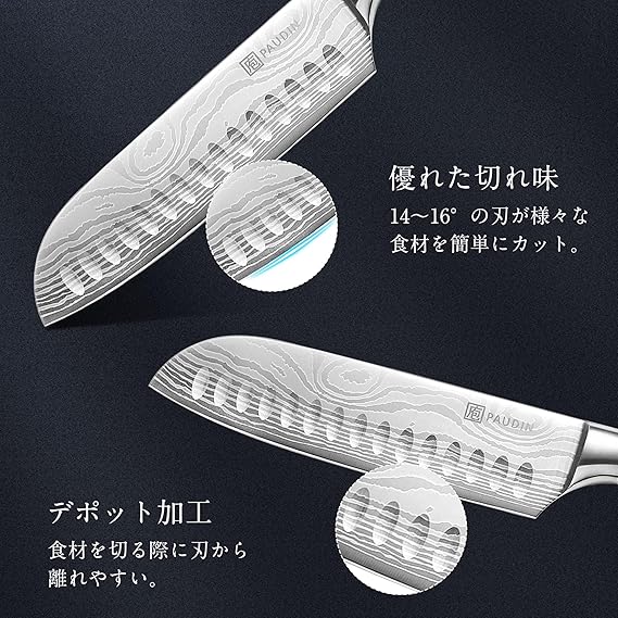 三徳包丁 PAUDIN 包丁 170㎜ 万能包丁 両刃 左利き対応 鞘付き 5Cr15Mov 高炭素ステンレス 切れ味長い 木製ハンドル 肉切り? 魚切り?菜切り包丁 キッチン用品 ギフト 贈り物 a a