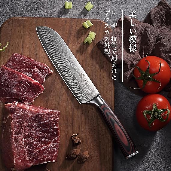 高炭素ステンレス:本製品はドイツから輸入した5Cr15Movステンレスの素材を採用していますので、硬さに優れ、耐久度も強化され、抜群な切れ味になりました。また、水に強い素材を採用しているので、錆びにくくになり、優れた質感と耐