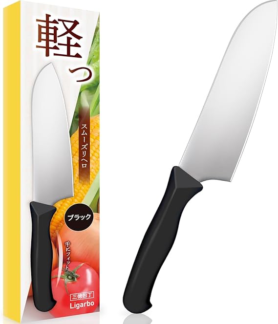 Ligarbo(リガーボ) 包丁 三徳包丁 「扱いやすい軽量仕様」ステンレス包丁 刃渡り165mm 86g 軽量 食洗機対応(ブラック) a a