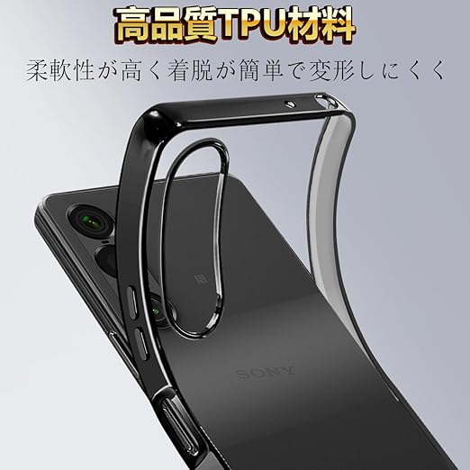Xperia 1 VII ケース クリア 薄型 透明 TPU ソフト 耐衝撃 黄変防止 ストラップホール付き xperia 1 vii カバー SO-51F対応 Xperia 1 7 ケース(ブラック) a