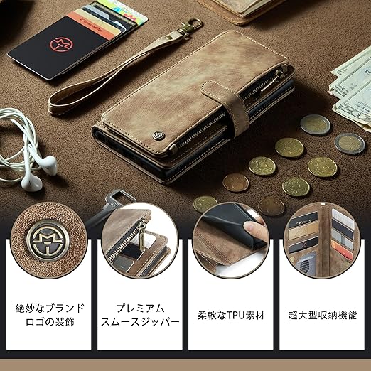 【高品質素材】外部のカバーは高品質なPUレザー素材で作られ、素材の表面に手触りは非常に良い、上品で洗練されたデザインです。中身は柔軟なTPU素材で作られて、スマートフォンの全面保護でき、脱着簡単です。汚れと傷に強い合成皮革の特性を最大限引き出しつつ、上質な質感と