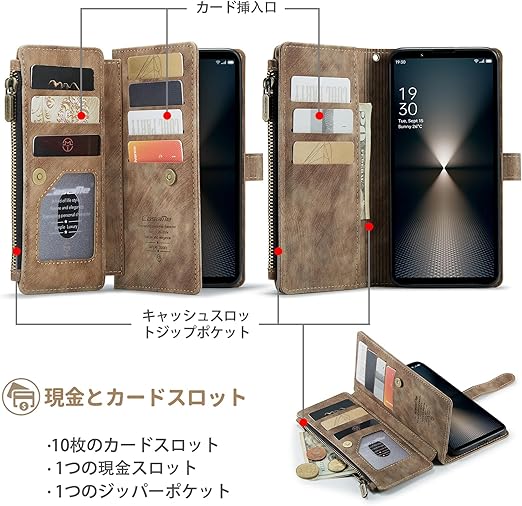 SeGinn Xperia 1 VII 対応 ケース 手帳型 カバー PUレザー 多財布デザイン スタンド機能付き 磁気バックル付き カード収納 コイン収納 エクスペリア 1 vii ケース 手帳型 大容量財布型 収納ポケット 衝撃防止 擦り傷防止 スクリーン/カメラ保護 実用性高 xperia 1 vii 財布型ケース (ブラウン) a