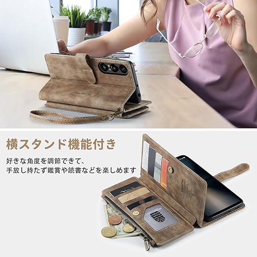 【対応機種】Xperia 1 VII に対応します。対応機種を十分ご確認の上、ご注文頂きますようお願い申し上げます。【横スタンド機能付き】ケースを横置くとスタンド機能になり、好きな角度を調節できて、手放し持たず鑑賞や読書などを楽しめます