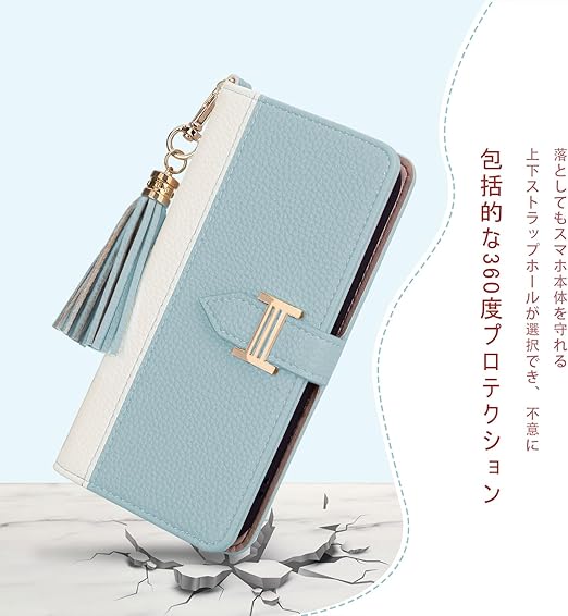 Xperia 1 VII ケース 手帳型 エクスペリア1 VII ケース 財布型 SO-51F/SOG15 カバー Xperia 1 VII カバー エクスペリア 1 7 スマホケース 2色パッチワークファッション携帯ケース マグネットクラスプ付き カード入れ収納 スタンド機能 高級PUレザー 全面保護(同色のペンダント付き) (オータムブルー) a