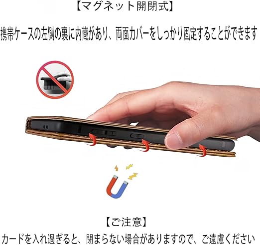 【多機能】:①[スタンド機能が付いて]:横向いて斜めに立てて、お好きな角度を調整できます。②[360度保護]:内蔵マグレット機能付きの手帳型カバーで、大切なディスプレイへのキズ、汚れ、衝撃も保護できます。③[マグネット開閉式]:携帯ケースの左側の裏に内蔵があり、両面カバー
