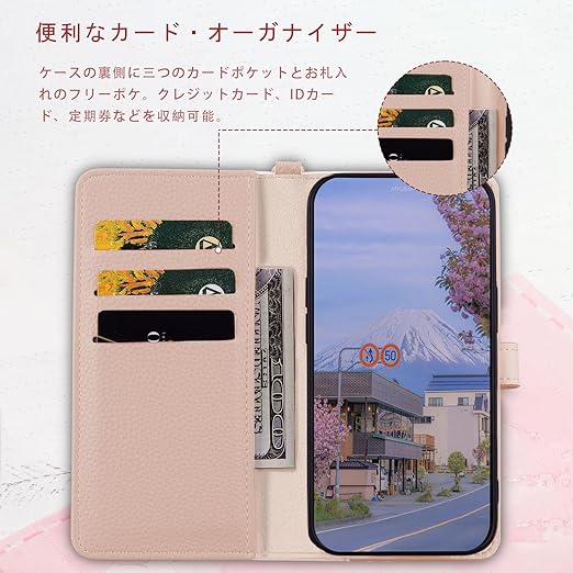 【カード収納】このXperia 1 VII 手帳カバーには3つのカードポケットと、カードやその他のチケットを収納できる横長のマルチ