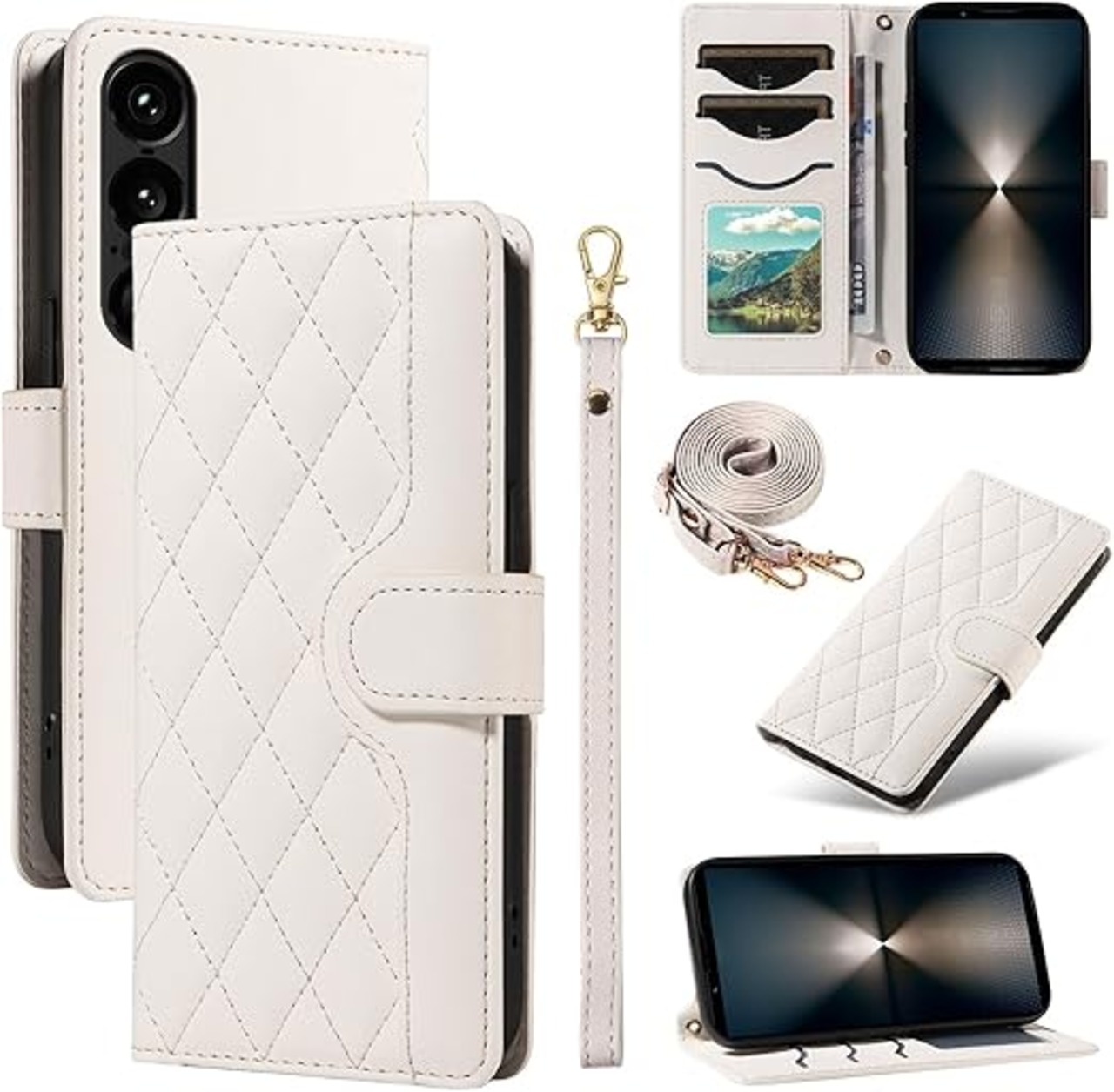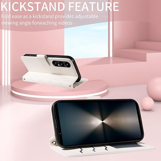 Xperia 1 VII ケース 手帳型 エクスペリア1 VII ケース ショルダー SO-51F/SOG15 カバー Xperia1VII スマホケース エクスペリア 1 7 カバー手帳型 財布型 カード収納 横置き機能 耐衝撃 携帯カバー ストラップ付き(パールホワイト) a