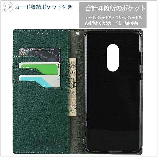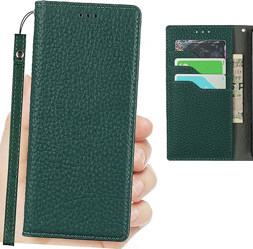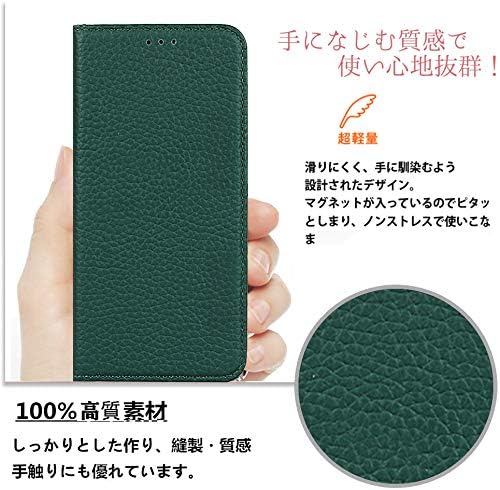 Cavor Xperia 1 VII 本革ケース Xperia 1 VII ケース手帳型 Xperia 1 VII ケースカード収納 Xperia 1 VII カバー財布型 Xperia 1 VII ケースカード収納携帯カバースマホケース Xperia 1 VII 手帳型ケースライチ紋真皮付きの専属ストラップ同梱なので 横置 内蔵マグネッ【ダークグリーン】 a
