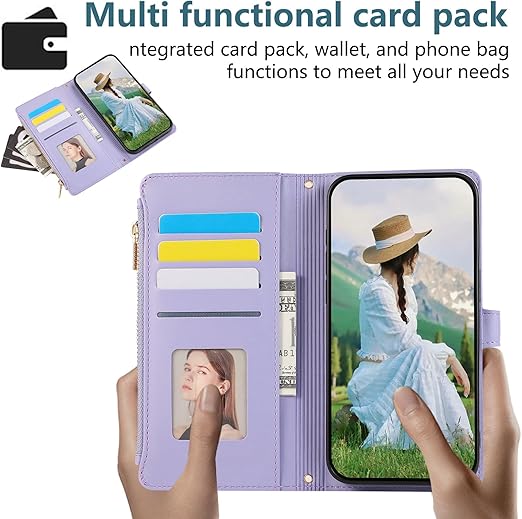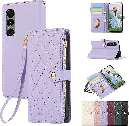 Rosbtib Xperia 1 VII ケース 手帳型 エクスペリア1 vii ケース 財布型 カバー docomo SO-51F ケースカバー ファスナー型 小銭入れ 携帯カバー カード収納 Xperia 1 VIIケース おしゃれ 刺繍 肌触り良い 高級PUレザー エクスペリア1VII スマホケース マグネット式開閉式 スタンド機能 全面保護(パープル) a