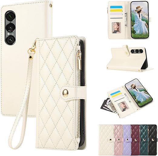 Rosbtib Xperia 1 VII ケース 手帳型 エクスペリア1 vii ケース 財布型 カバー docomo SO-51F ケースカバー ファスナー型 小銭入れ 携帯カバー カード収納 Xperia 1 VIIケース おしゃれ 刺繍 肌触り良い 高級PUレザー エクスペリア1VII スマホケース マグネット式開閉式 スタンド機能 全面保護(ホワイト) a