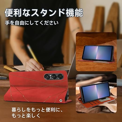 Sony Xperia 1 VII ケース 手帳型 財布型 耐衝撃 エクスペリア 1vii スマホケース カード収納 横置き機能 SO-51F SOG15 XQ-FS44 携帯カバー 横置きスタンド機能付 ラップホール付き マグネット内蔵 擦り傷防止 肌感レザー 防水 耐摩擦 ファッション (レッド) a