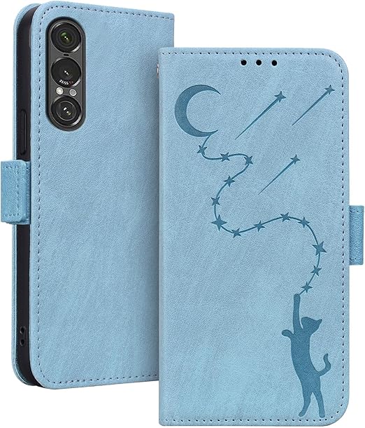 Xperia 1 VII ケース 手帳型 エクスペリア1 VIIケース 猫柄 SO-51F / SOG15 / XQ-FS44 スマホケース カード収納 耐衝撃 xperia 1 vii カバー 薄型 スマホケース エクスペリア 1 マーク 7 財布型 スタンド機能 サイドマグネット カード入れ PUレザー TPU 全面保護 ねこ 6.5インチ対応 かわいい アイスブルー a