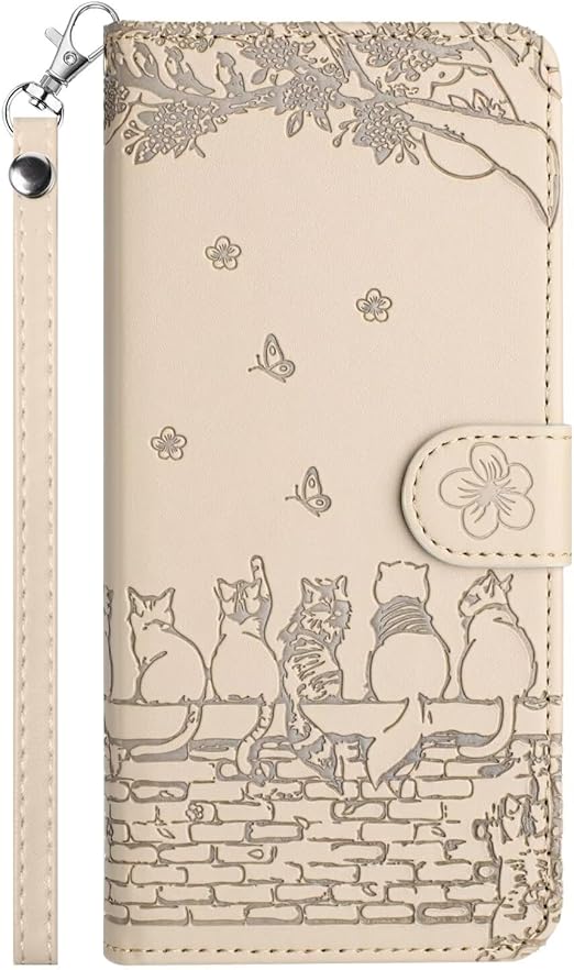 Xperia 1 VII ケース手帳型 レザー エクスペリア1 第7世代 カバー 内蔵マグネット軽量 耐衝撃 【TEDTIKJT】 Sony ケース 手帳型 エクスペリア 1 第七世代 スマホケース 桜の下の猫 xperia 1vii カード収納 スタンド機能 収納 財布型 人気 高級PUレザー (Xperia 1 vii ケース, アプリコット) a