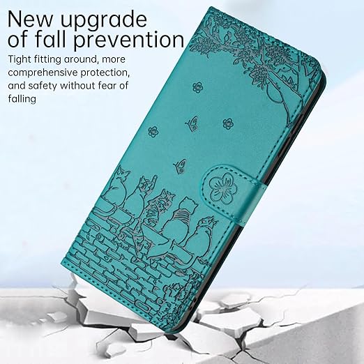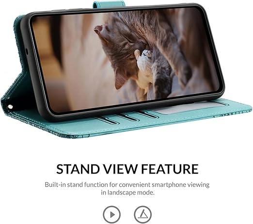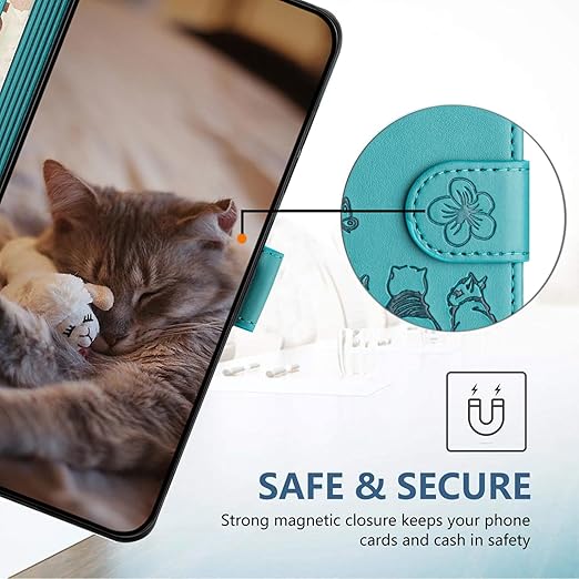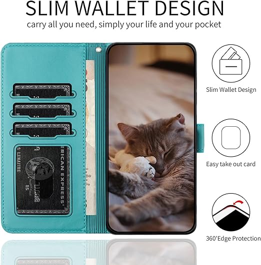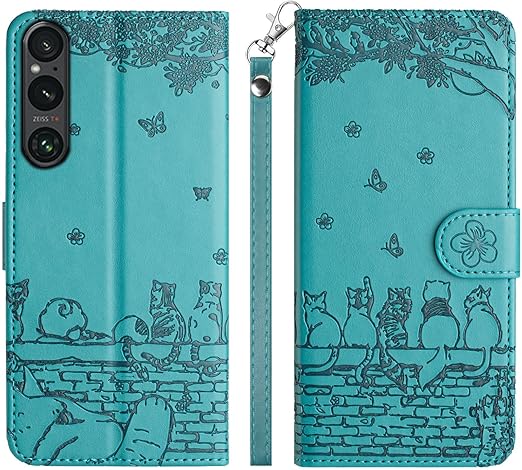 ALSDKEZI Xperia 1 VIIケース 手帳型 可愛い 猫柄 エクスペリア1 第7世代 携帯カバー 蝶の花柄 スマホケース おしゃれ カード入れ 財布型 SONY 1 第7世代 カバー 動物柄 カード収納 スタンド機能 軽量 便利 内蔵マグネット式 ターコイズ 純色シンプルデザイン - Turquoise a