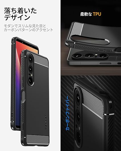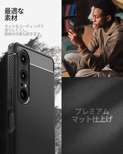 Spigen 【創業18年の技術力】Xperia 1 VII ケース 耐衝撃 米軍MIL規格 TPU ソフト マット仕上げ ストラップホール 指紋防止 SO-51F ラギッド・アーマー・マグフィット ACS09591 (マット・ブラック) a