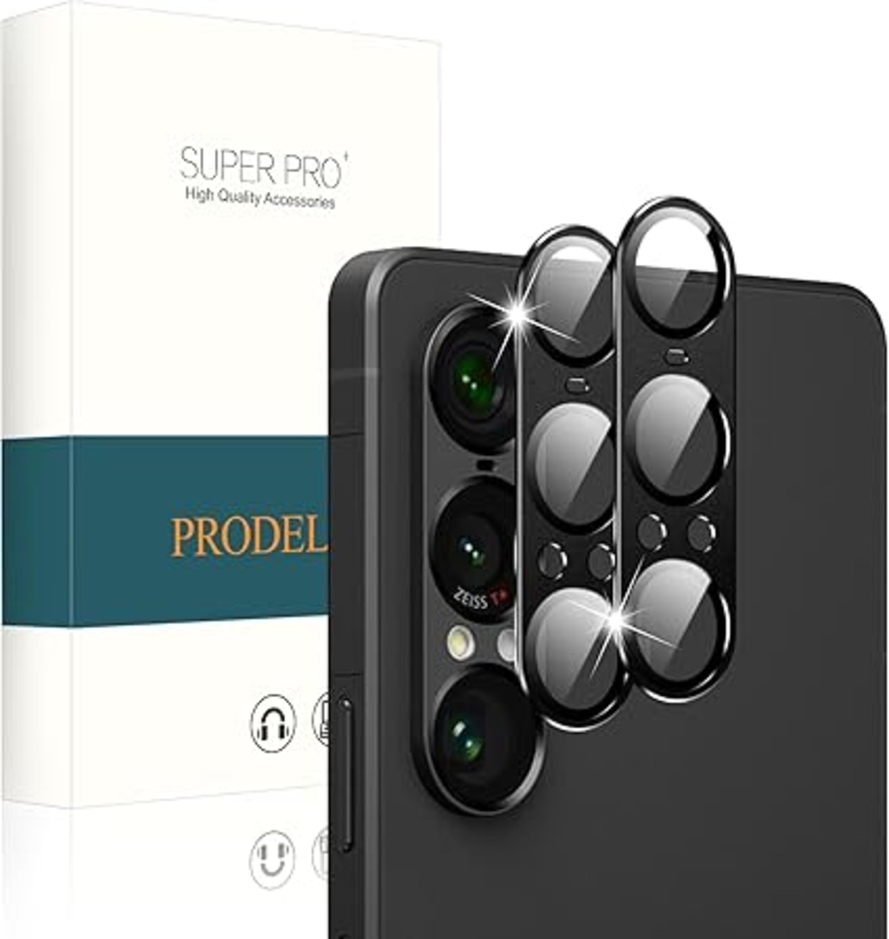 PRODELI For Xperia 1 VII SO-51F / SOG15 専用 カメラフィルム アルミ合金製+AR高透過率強化ガラス 一体型 防爆裂 エクスペリア 1 vii ガラスフィルム 耐衝撃 硬度9H キズ防止 高透過率 気泡ゼロ ケースに干?なし xperia 1 vii 用 レンズ 保護(ブラック/2枚入り) a