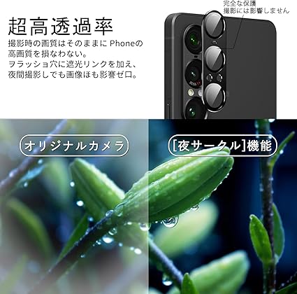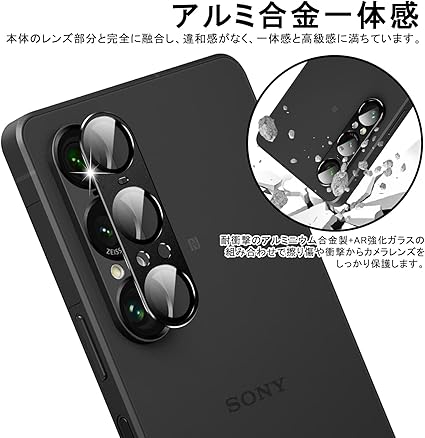 【アルミ合金一体感】本体のレンズ部分と完全に融合し、違和感がなく、一体感と高級感に満ちています。耐衝撃のアルミニウム合金製+AR強化ガラスの組み合わせで擦り傷や衝撃からxperia 1 viiカメラレンズをしっかり保護します。