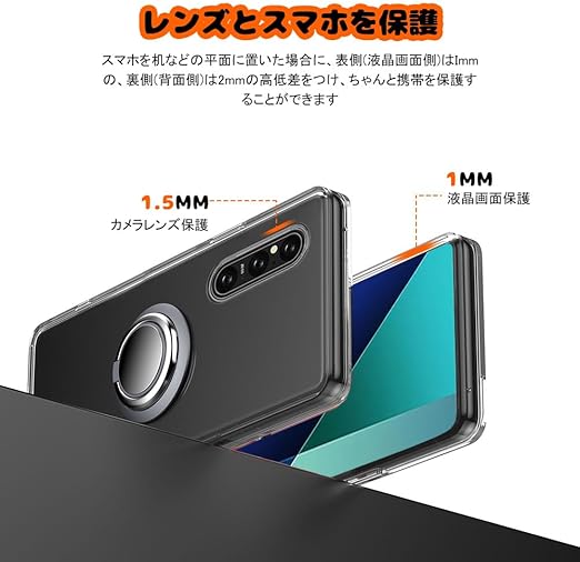 対応 Xperia 1 VII ケース リング付き 透明 エクスペリア1 VII スマホケース リング クリア シリコン 薄型 スタンド機能 耐衝撃 耐久 滑り止め a