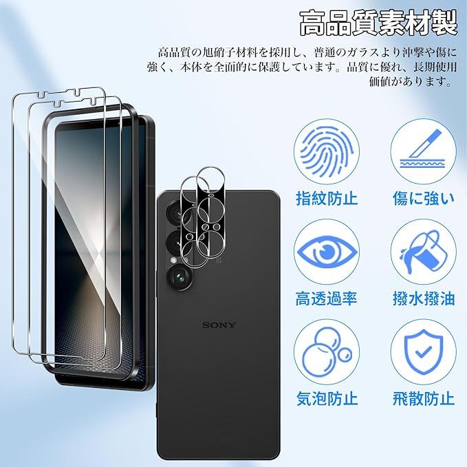 【対応機種】Xperia 1 VII (SO-51F/XQ-FS44/SOG15) 対応。ガラスフィルム*2+レンズフィルム*2。誤発注のないよう、ご註文前に型番をご確認くださいますようお願いいたします。